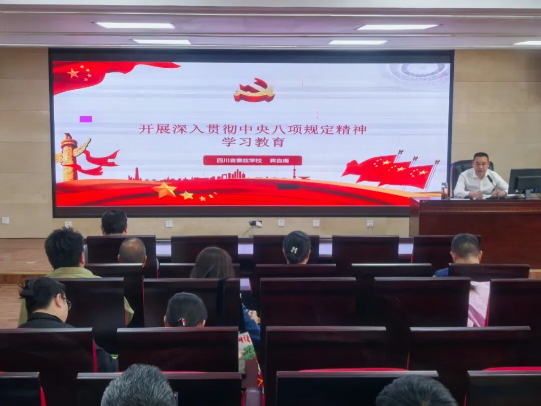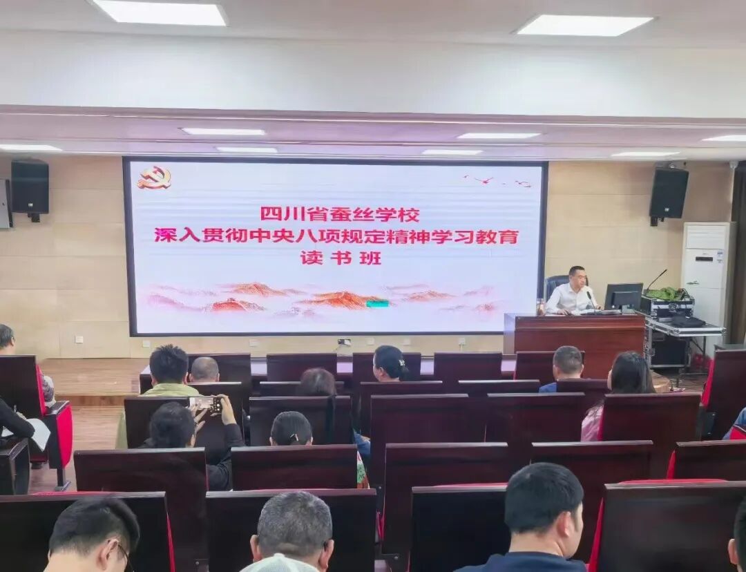 为持续推进作风建设走深走实,以严基调、实作风推动学校教育事业高质量发展。2025年4月15日下午,四川省蚕丝学校深入贯彻中央八项规定精神专题学习教育读书班在表方楼三楼阶梯教室举行。学校领导班子成员、全体党员、入党积极分子、中层干部及民主党派代表参加会议,通过专题学习、研讨交流等形式,推动中央八项规定精神入脑入心、见行见效。学校党委书记龚自南同志主持会议并讲话。