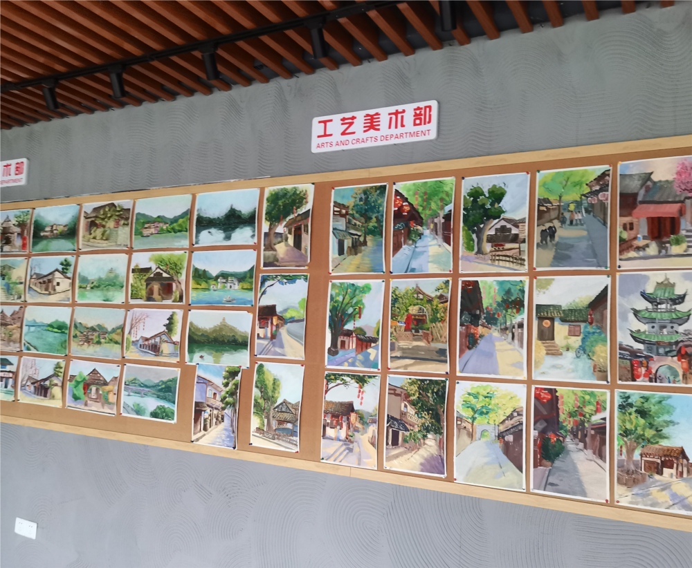 教学过程中,教师团队从构图、色彩观察到主题性创作分阶段指导学生,注重传统工艺与现代技法结合,采用 “现场示范 + 小组研讨 + 创作” 模式,激发学生个性化表达与创造力。