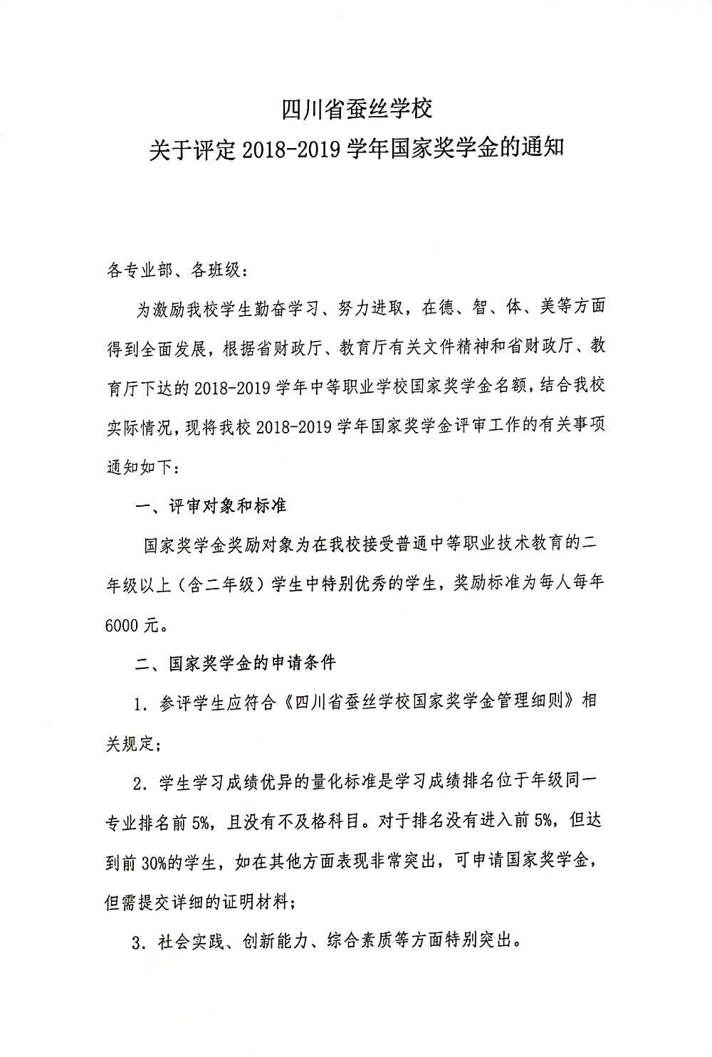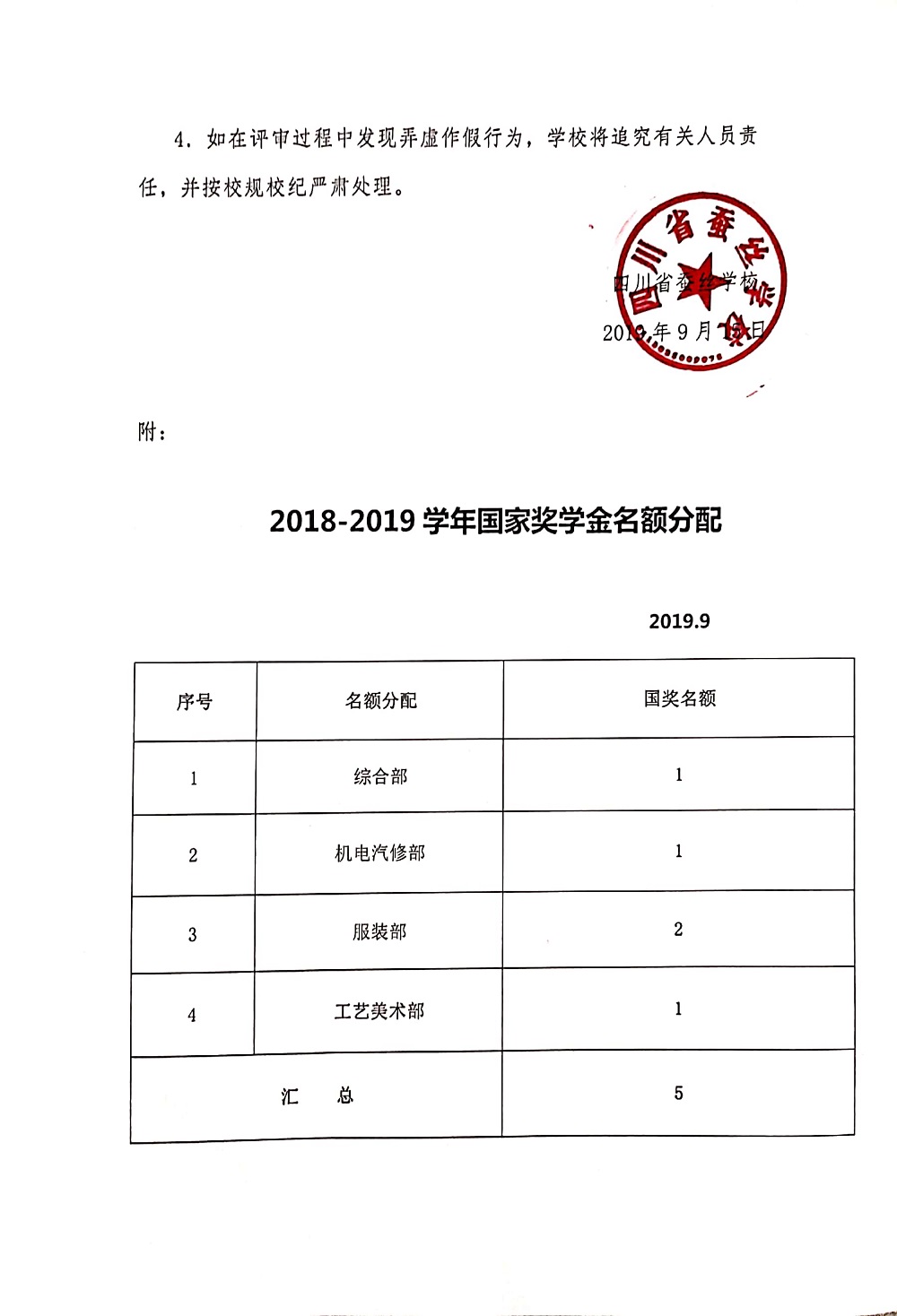四川省蚕丝学校关于评定2018-2019学年国家奖学金的通知