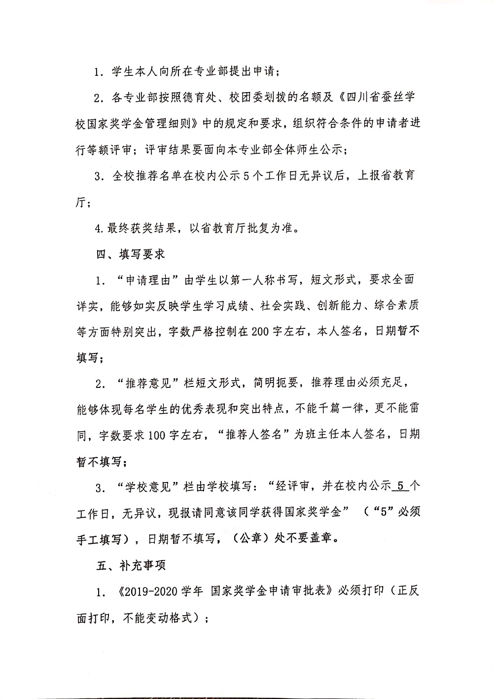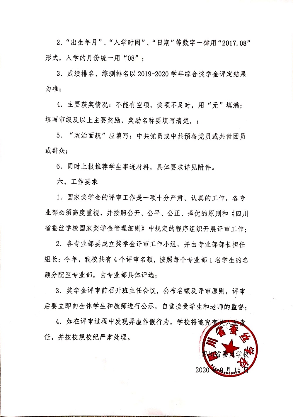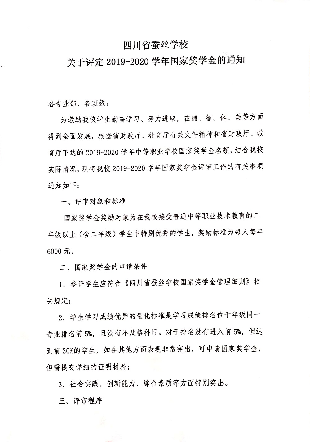 四川省蚕丝学校关于评定2019-2020学年国家奖学金的通知
