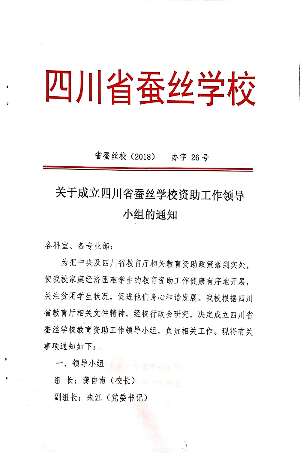 关于成立四川省蚕丝学校资助工作领导小组的通知