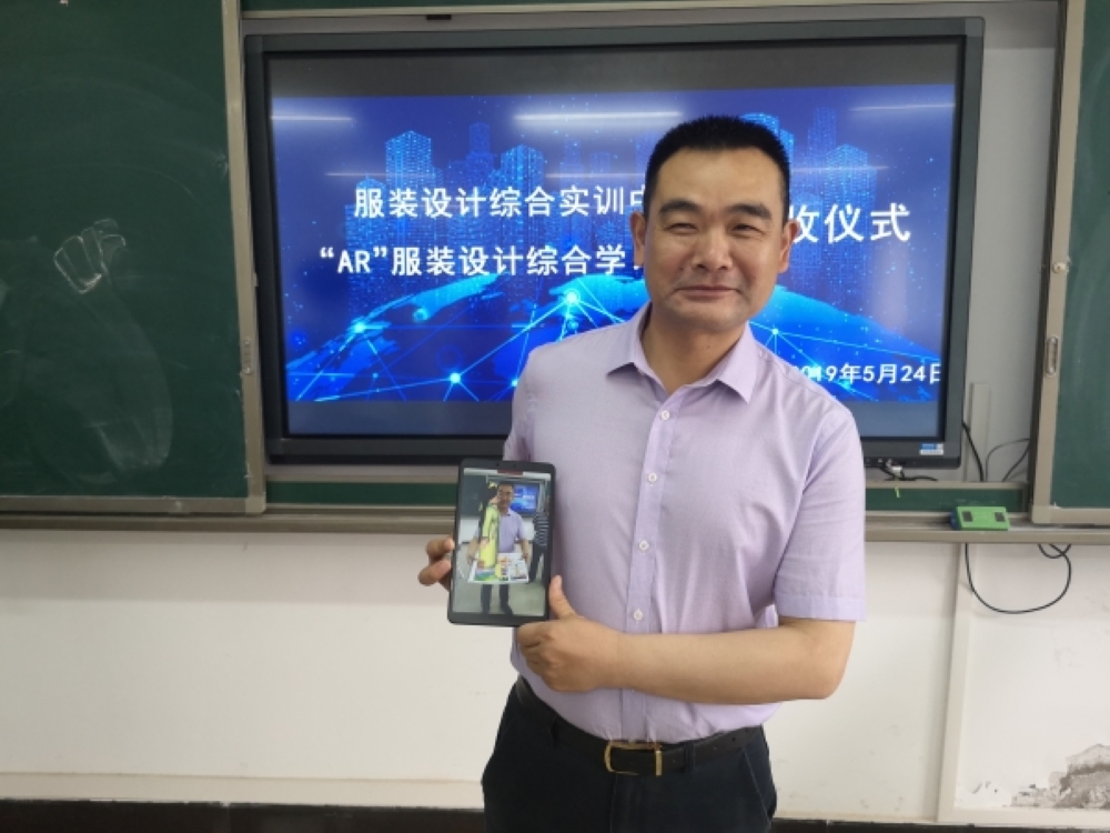 验收过程中,在龚校长的带领下,验收组对各项实训设备开展了现场运行、实际操作等综合检测。由刘春伶老师演示E+互动设计教学一体机的使用;由远湖科技有限公司梁经理,向验收小组演示“AR”课件资源交互虚拟仿真教学系统的成果,并实现了手机3D成像。验收组一致同意此次服装设计综合实训中心及“AR”课件资源交互虚拟仿真教学系统验收通过。