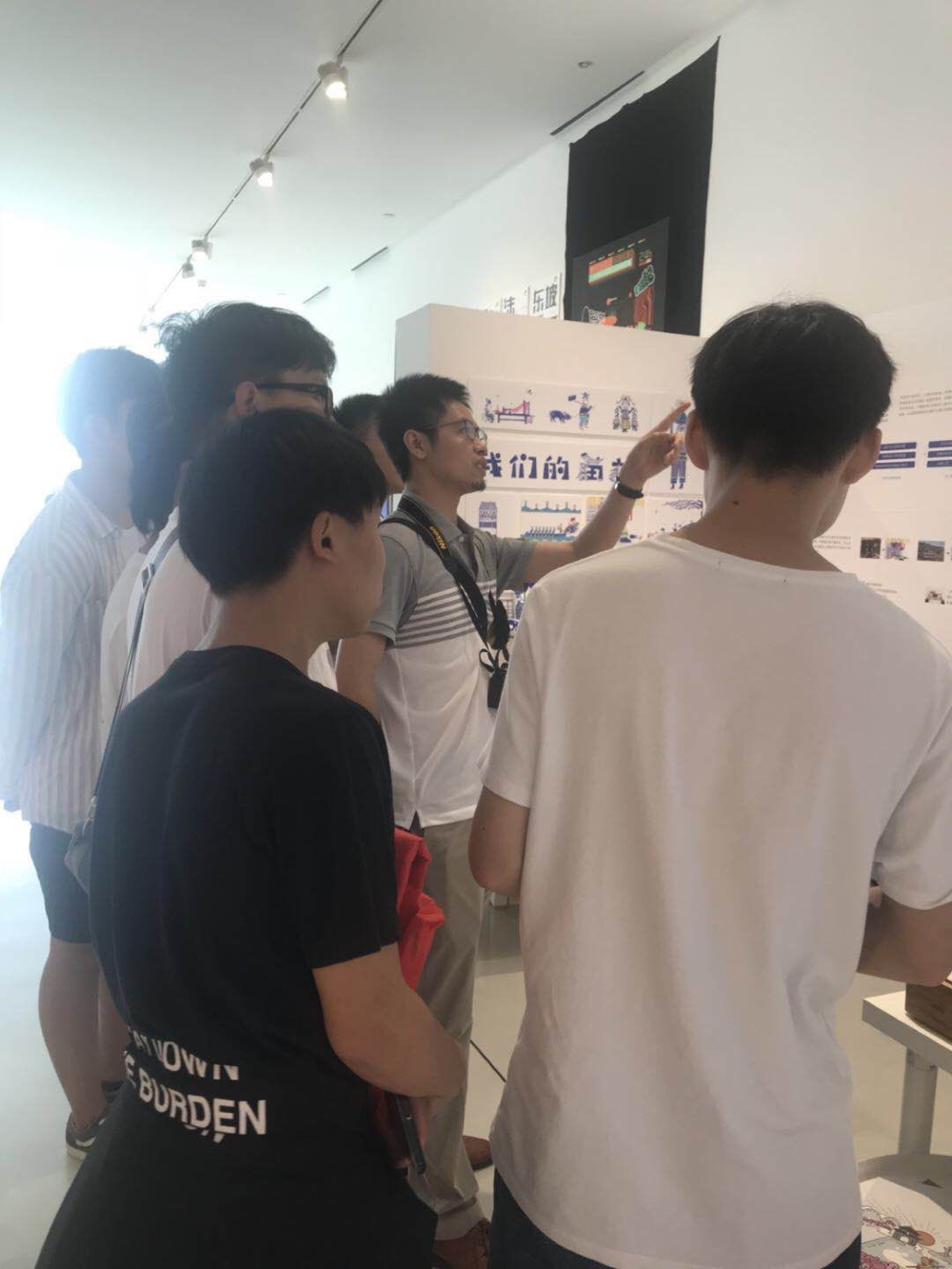 这次第二课堂教学,以开阔学生眼界、刺激师生创作灵感、提高学生设计水平为目的,展区就是讲堂,带队教师现场教学,设计者就是辅导教师,一个展点就是一个教学点,一套作品就是一个案例,讲解方式根据作品展开,灵活生动,引人入胜。学生情绪高涨,直呼不虚此行。
