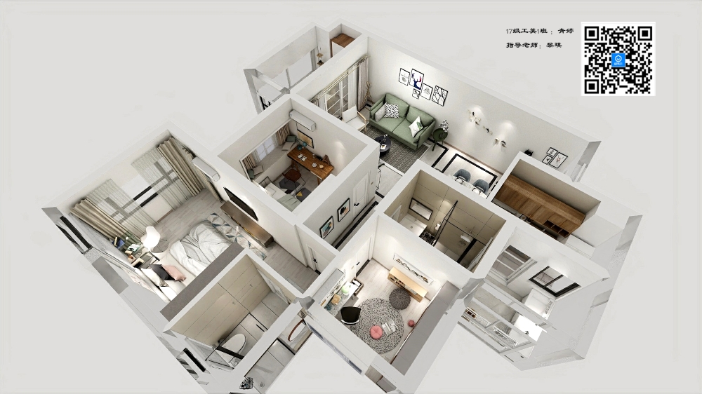 工艺美术部与艺锦室内设计双创人才培养工作室针对工艺美术部全体学生于6月10日-6月20日,开展主题为“创意生活 美好家居”的室内设计比赛,比赛图纸为双创人才工作室实际项目,为了同学们的作品效果,部里还组织专业教师进行专业指导,最后搜集作品60余件,经过专业教师的评审最终评出一等奖1名,二等奖2名、三等奖3名,优秀奖3名,优秀指导教师2名,此次作品大部分美观大方,构图严谨,内容紧扣题目,有创意,作品质量高,层次分明,设计大胆创新,风格独特,部分作品设计能体现时代的发展潮流,表现室内设计的新工艺、新材。