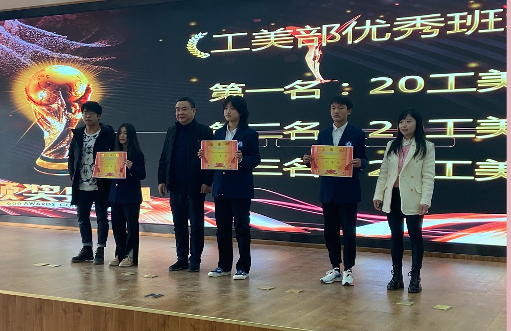 冯锐老师在大会上对工艺美术部全体师生的成绩给予了肯定,并对获奖的班级组织和个人表达了诚挚的祝贺。况成军老师和两位企业代表也上台发言,对同学们表示了殷切的希望。几位领导和嘉宾为获奖的班级、组织以及个人上台颁奖,表彰大会洋溢着热烈的气氛,同学们喜悦的欢呼声和掌声此起彼伏。大会最后,由工美部部长李德群老师认真总结了2021年度同学们取得的各项成绩,并对同学们提出了下一步的期望和要求。