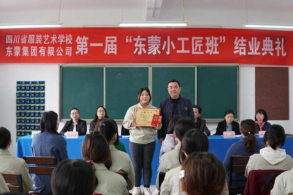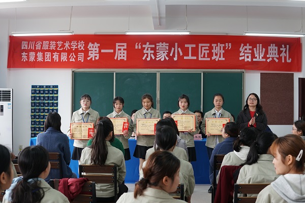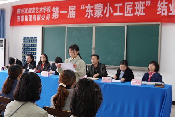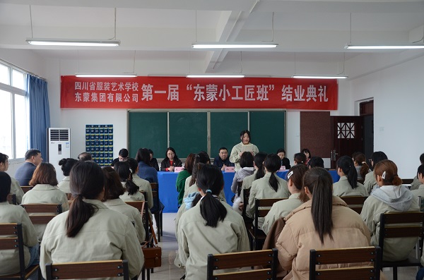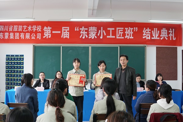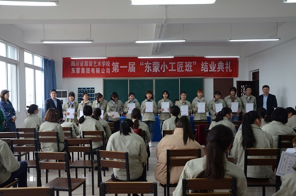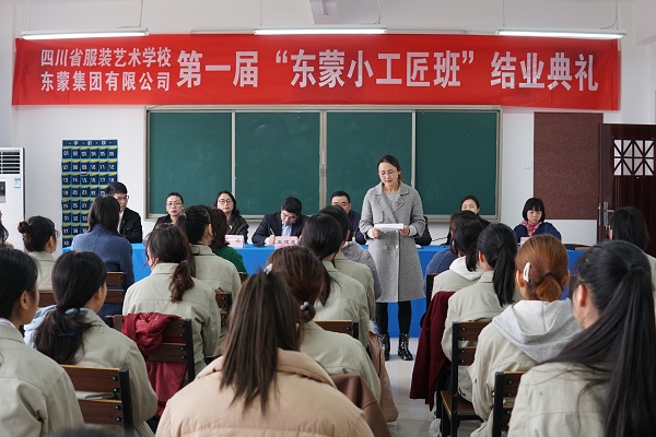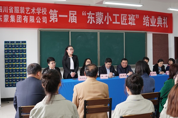 2019年3月27日下午,四川省服装艺术学校与东蒙集团联合开办的“东蒙小工匠班”举行了结业典礼。会议由服装部部部长叶菁主持。