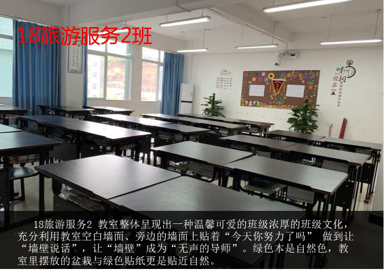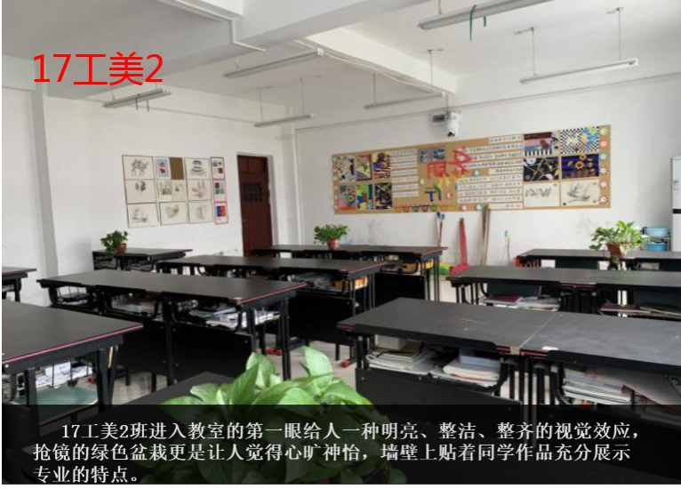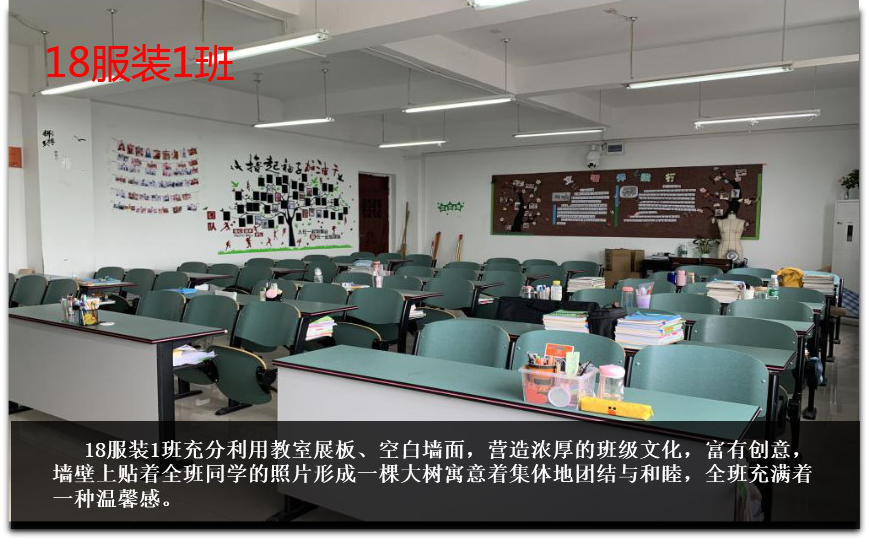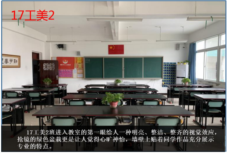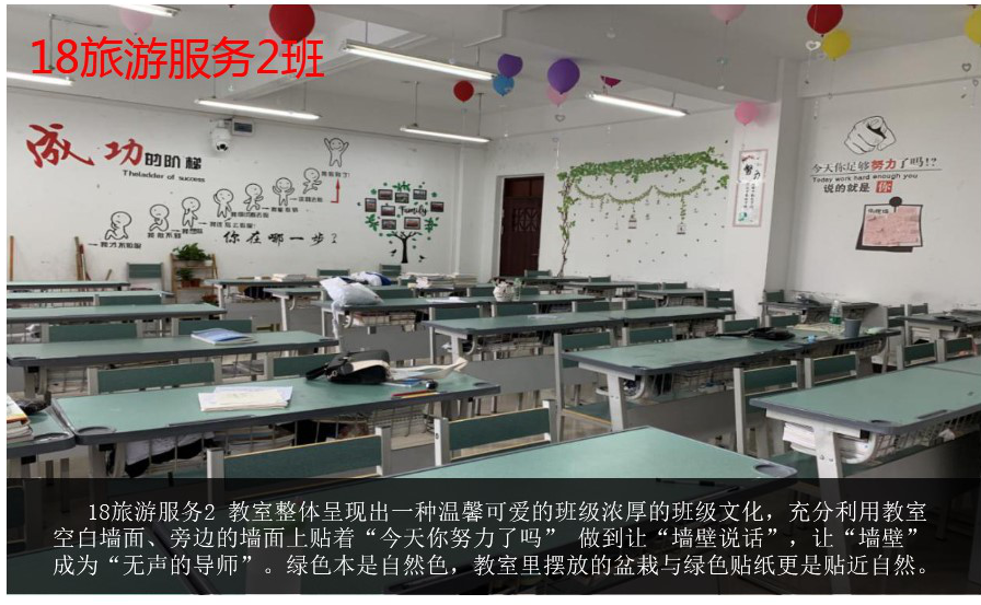 为进一步落实我校生态文明教育特色学校、园林式校园建设的创建目标,在学校领导的牵头带领,德育处、校团委的精心组织,各专业部师生的积极配合下,我校于近期举办“校园最美教室”评比活动。校园的教室,是莘莘学子学习的园地,是知识技能传播的殿堂,是青春友谊激扬的天地,也是心灵归宿安宁的港湾。此次评选活动旨在让同学们拥有一个舒适、温馨的学习环境,也为同学们提供展示个性特长的空间,以此充分发挥同学们的想象力、创造力及团队合作能力,养成良好的学习习惯和生活习惯。经德育处、校团委、各专业部及学生会评委组层层选拔,17级工美2班、18级服装1班、18级电梯大专班、18级旅游服务类2班四个班级被评选为最美教室。