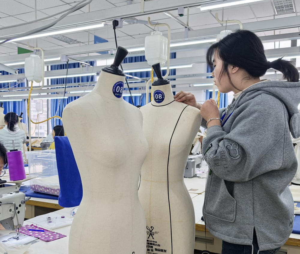 赛前,参赛学生高美、姚传敏在服装专业老师们的悉心指导下,投入了大量心血。他们日夜泡在工作室,面对款式设计、立体裁剪、套装制版和套装制作等复杂内容,学生们反复练习每一个针法、线条,不断优化设计;老师们则凭借丰富的经验,从设计理念到工艺细节,倾囊相授、耐心纠错,力求帮助学生们在技能上达到完美。