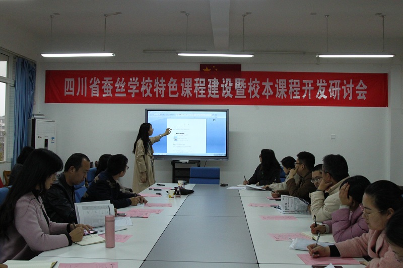3月13日下午,四川省蚕丝学校特色课程建设暨校本教材开发研讨会成功召开,研讨会由教务处主任黄英主持,中国纺织出版社指导老师、学校教务处及各专业部负责人、各专业教研组组长、学科带头人、校本教材建设项目组成员参加了研讨会。会议的成功召开,对推进我校专业特色发展,开发校企特色课程和理实一体化教材有着重要的指导意义。