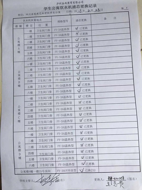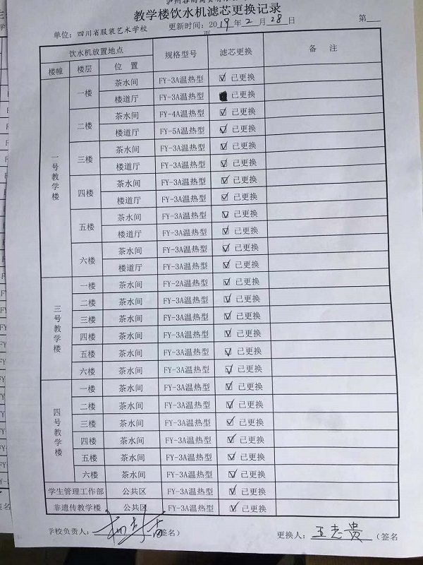 我校2019年春季校园直饮水机滤芯更换工作全部完成